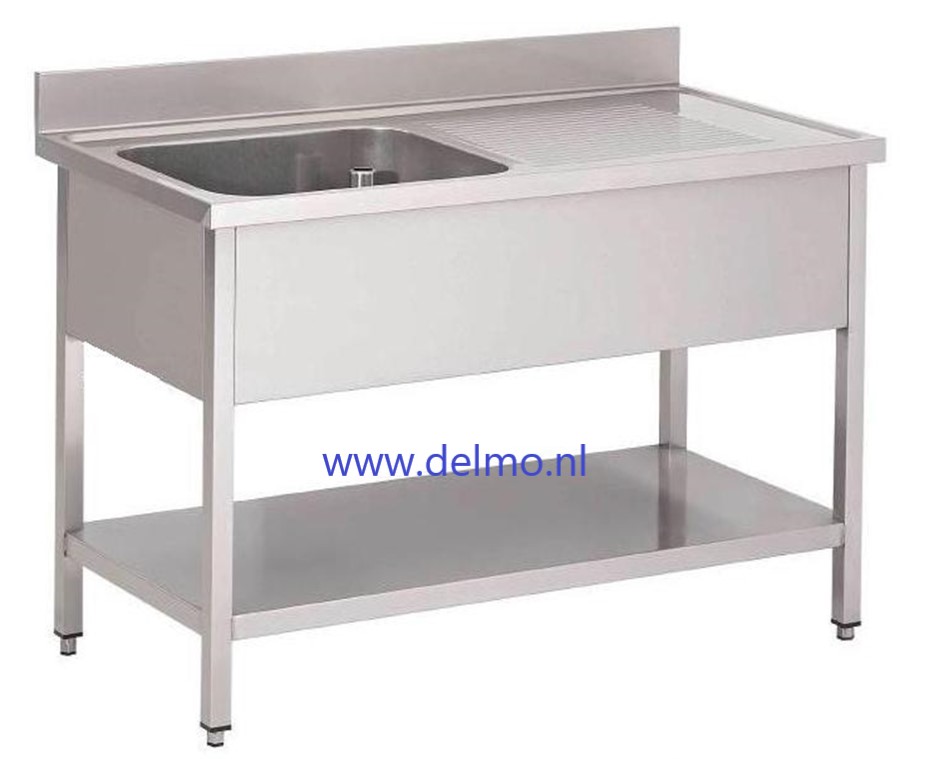 Blokvlak rvs spoeltafel 140x70cm. met spoelbak links, op open onderstel